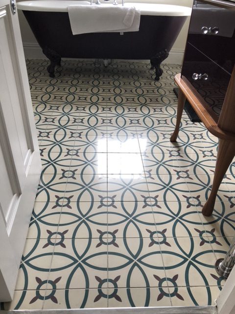 Cement encaustic tiles are very fashionable now and have been for several years. They are hand made and special but the downside is that they are one of the most difficult tiles to clean and maintain. They are more sensitive to staining and discoloration than limestone and white marble. The main reason for this is that the pigments used in the patterns are effected by almost everything that may be found in a bathroom or kitchen and acidic products will leave visible drip marks and rings etc etc.