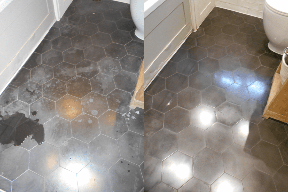 There are some chemicals that work better than others and after having done many of these floors we have a pretty good method for cleaning them that we feel is likely to be as good or better than most other tile cleaning companies. We also polish and clean concrete cement worktops!